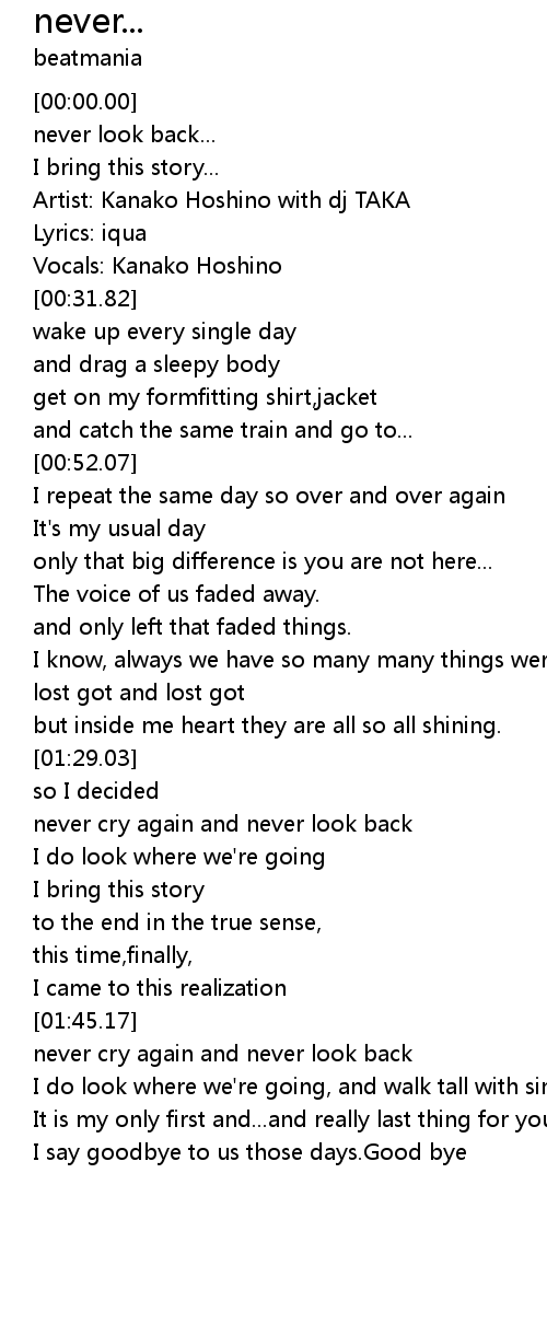 never cry again and never look back |
