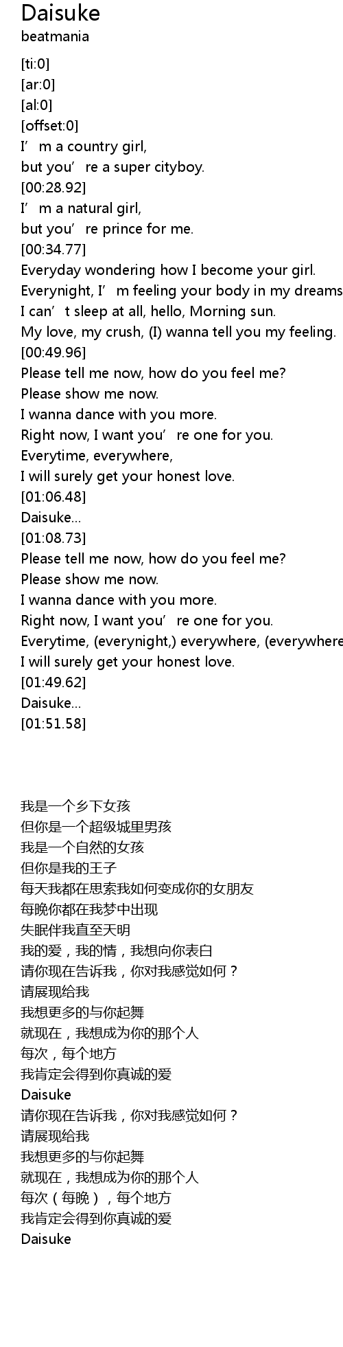 | [00:37.66] | Everyday wondering how I become your girl. |