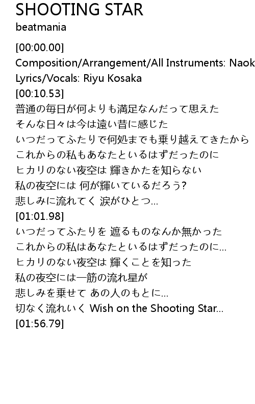 | [01:49.95] | 切なく流れいく Wish on the Shooting Star... |