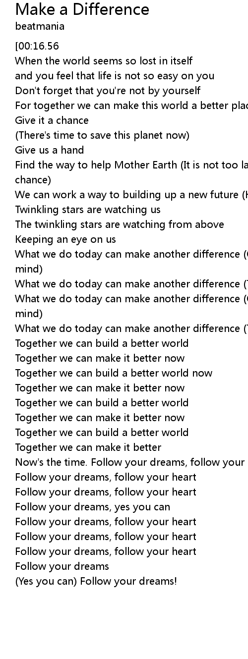 What we do today can make another difference (To the world, do it now) |