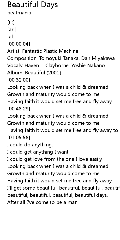 [01:43.97] beautiful, beautiful, beautiful, beautiful days.