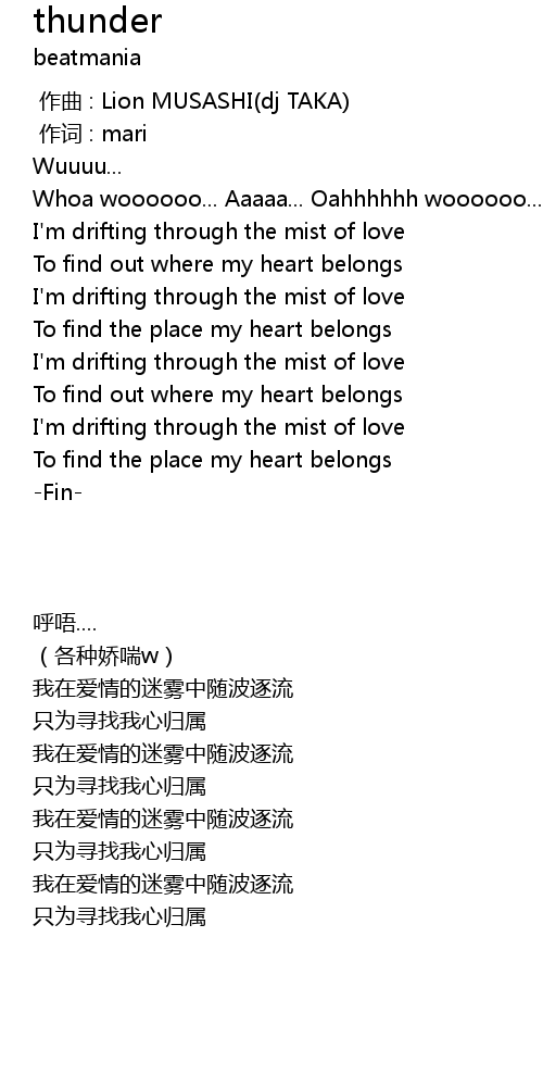 | [00:37.38] | Whoa woooooo... Aaaaa... Oahhhhhh woooooo... |