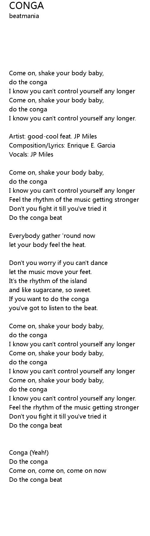 | [00:31.66] | Do the conga beat |