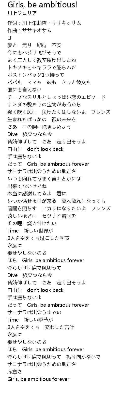 | ほら Girls, be ambitious forever | |