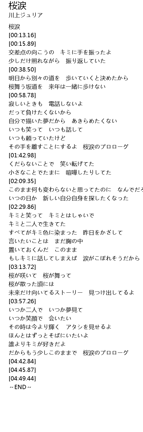 | [04:29.50] | だからもう少しこのままで 桜涙のプロローグ |