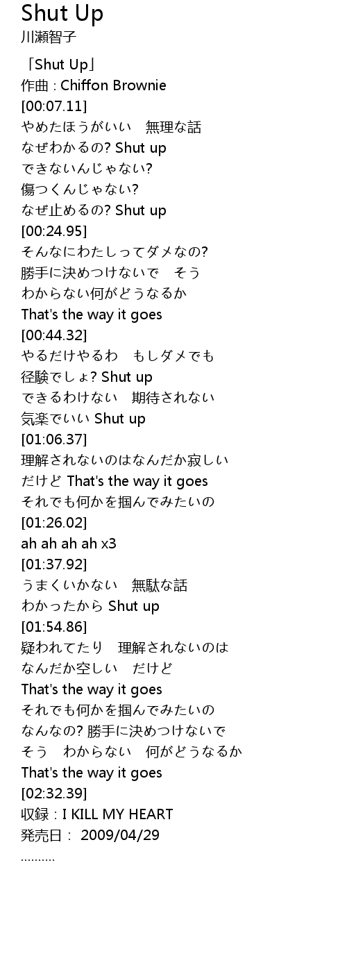 | [02:33.39] | shou lu: I KILL MY HEART |