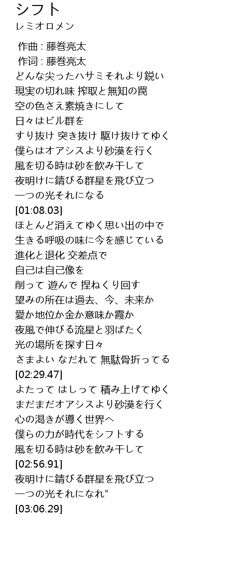 [01:54.22] 夜風で伸びる流星と羽ばたく