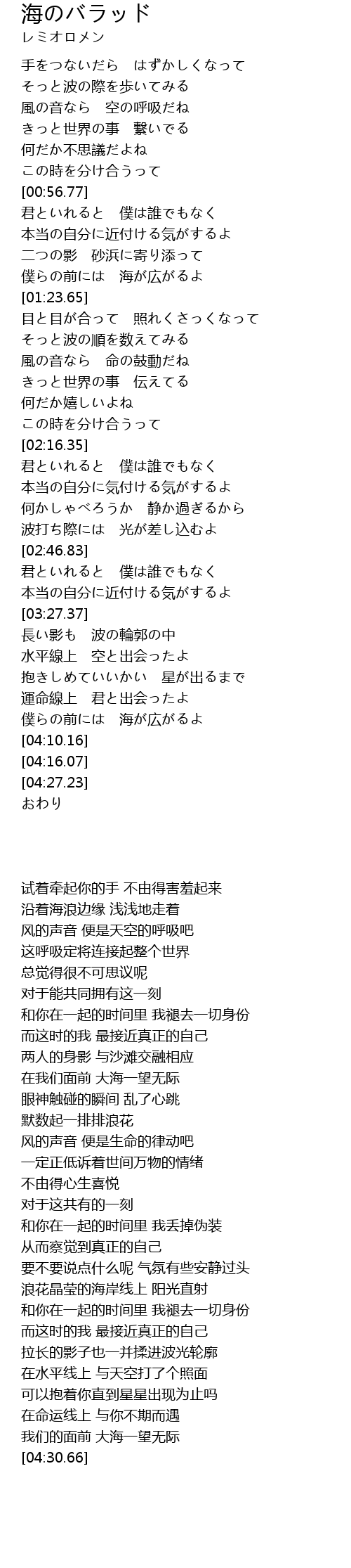 | [04:01.15] | 僕らの前には 海が広がるよ |
