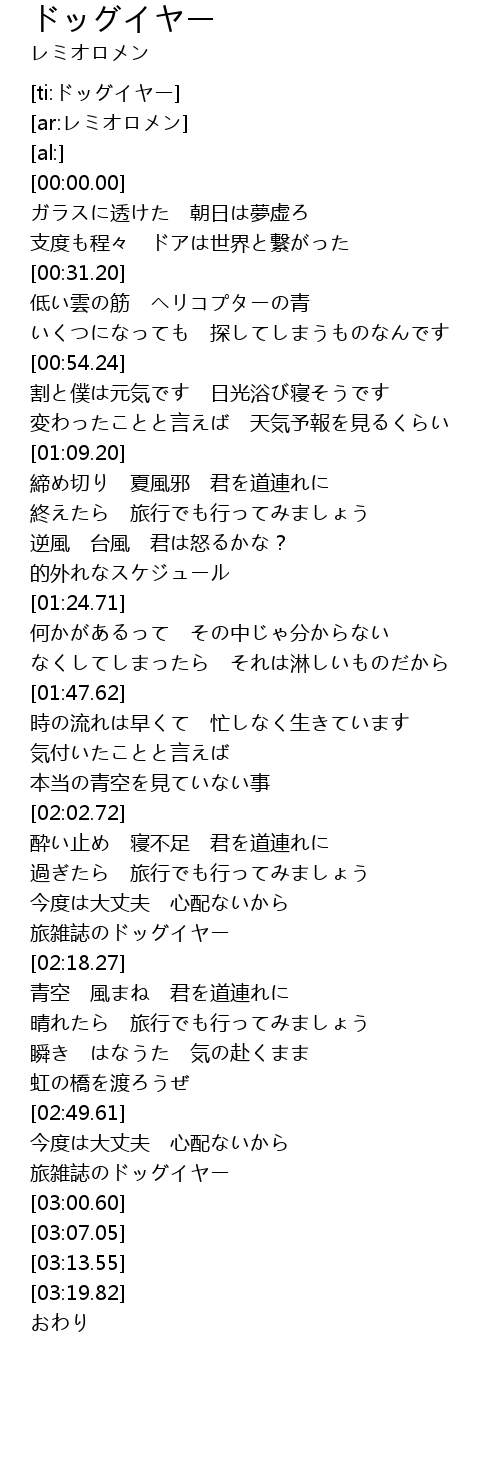 [02:38.51] 晴れたら 旅行でも行ってみましょう