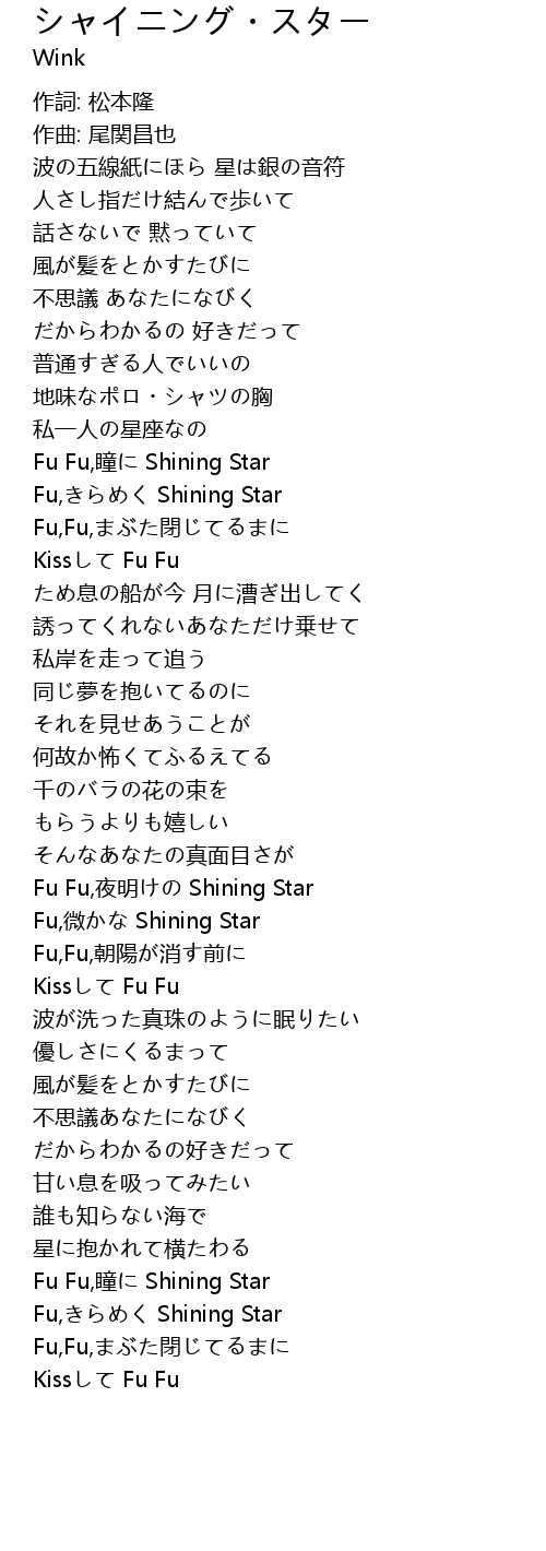 | [01:30.200] | Fu Fu,瞳に Shining Star |