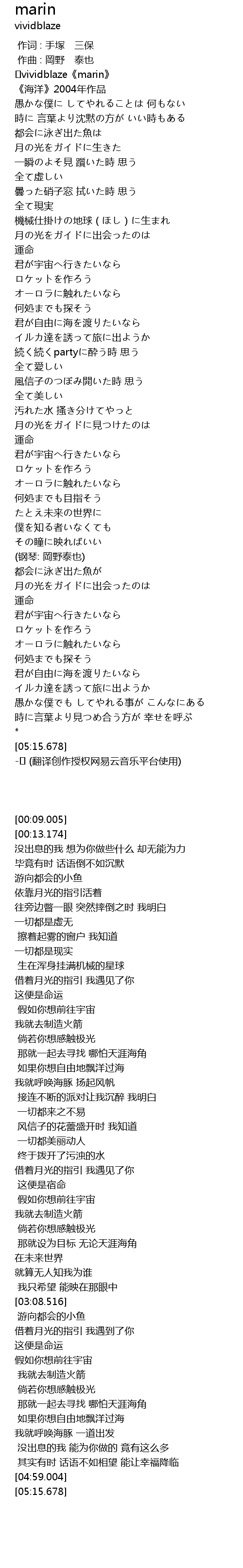 | [05:40.000] | - (翻译创作授权网易云音乐平台使用) |