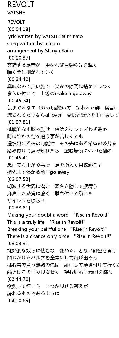 | [02:41.41] | Making your doubt a word "Rise in Revolt!" |