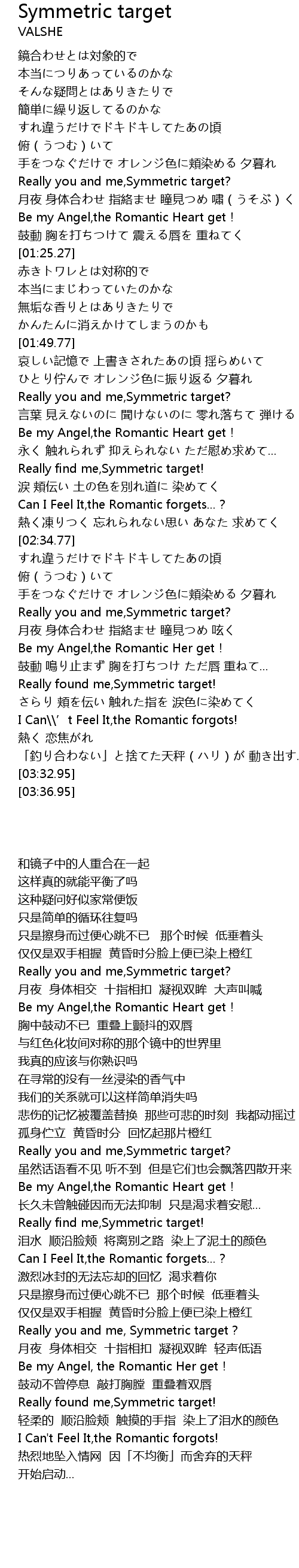 | [02:17.72] | Really find me, Symmetric target! |