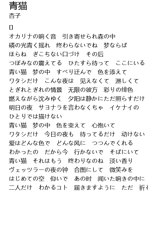 | 青い猫 梦の中 色を变えて 心抱いて | |