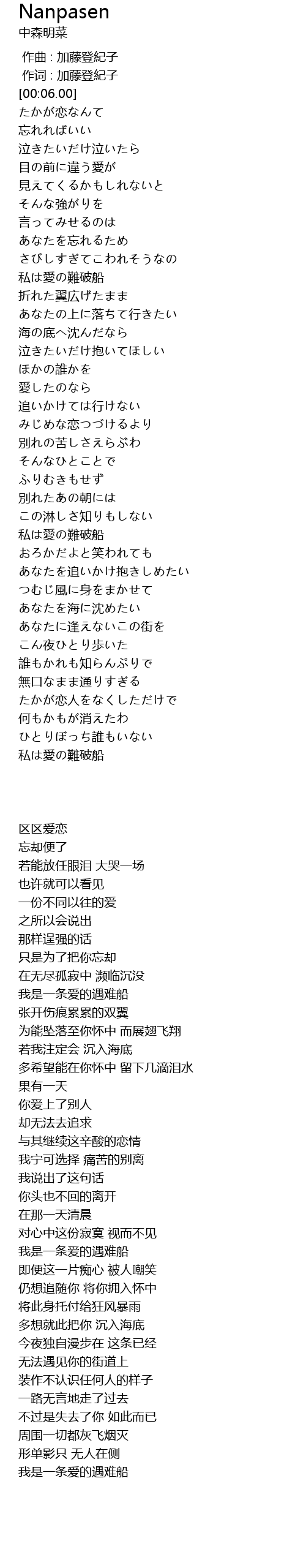| [00:01.00] | 作词 : 加藤登紀子 |