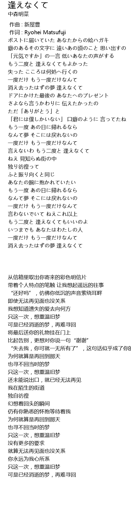 | [00:01.00] | zuò cí : Ryohei Matsufuji |