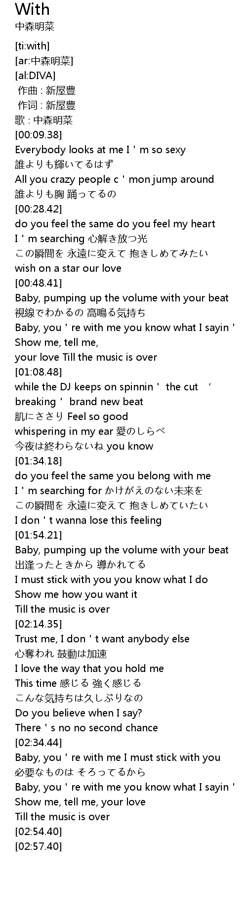 | [02:35.20] | Baby, you're with me I must stick with you |
