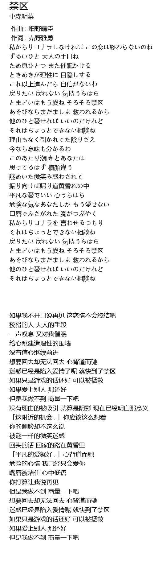| [01:06.04] | とまどいはもう愛ね そろそろ禁区 |