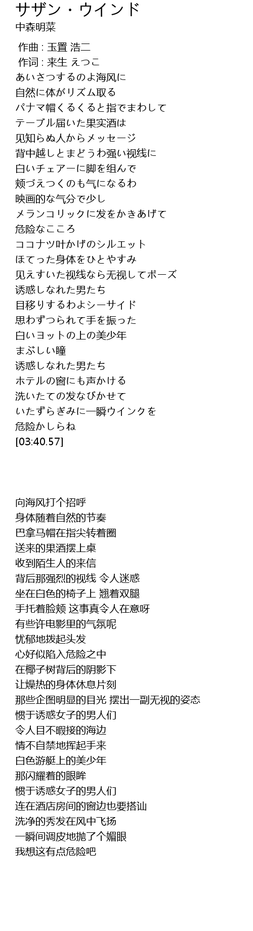| [00:23.26] | あいさつするのよ海风に |