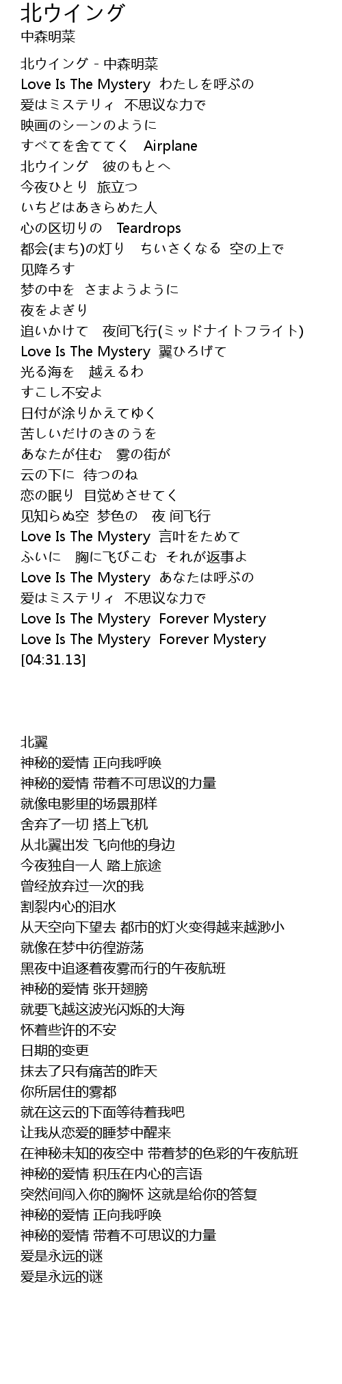 | [01:53.80] | Love Is The Mystery 翼ひろげて |