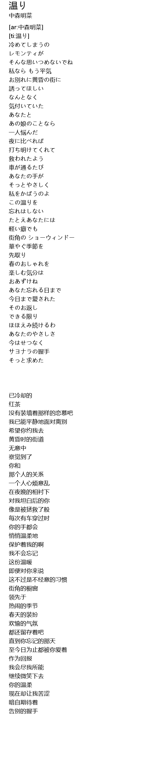 | [ti:温り] | |