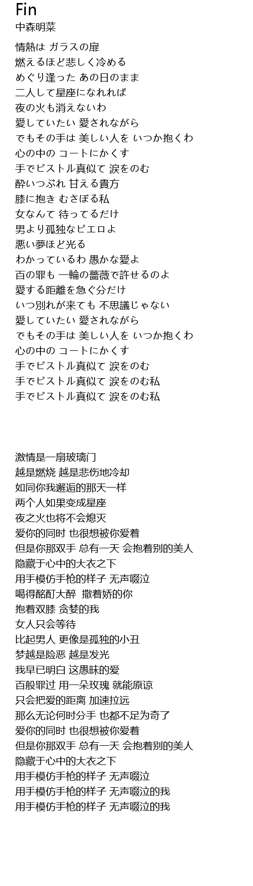 | 歌曲 | Fin |