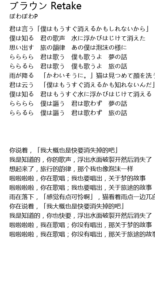 | [04:18.00] | ららるら 僕は謳う 君は歌わず 旅の話 |