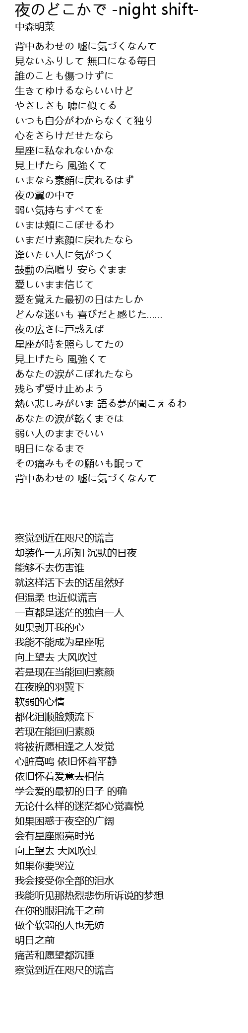 - 夜のどこかで -night shift-