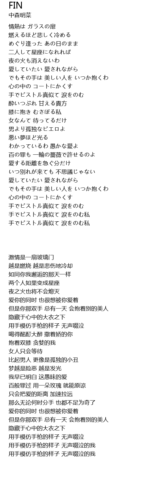 | 歌曲 | FIN |