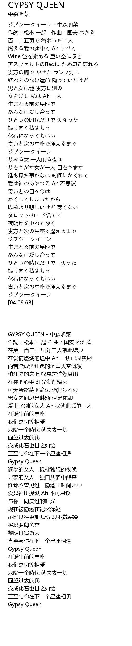 | [00:00.15] | GYPSY QUEEN - 中森明菜 |