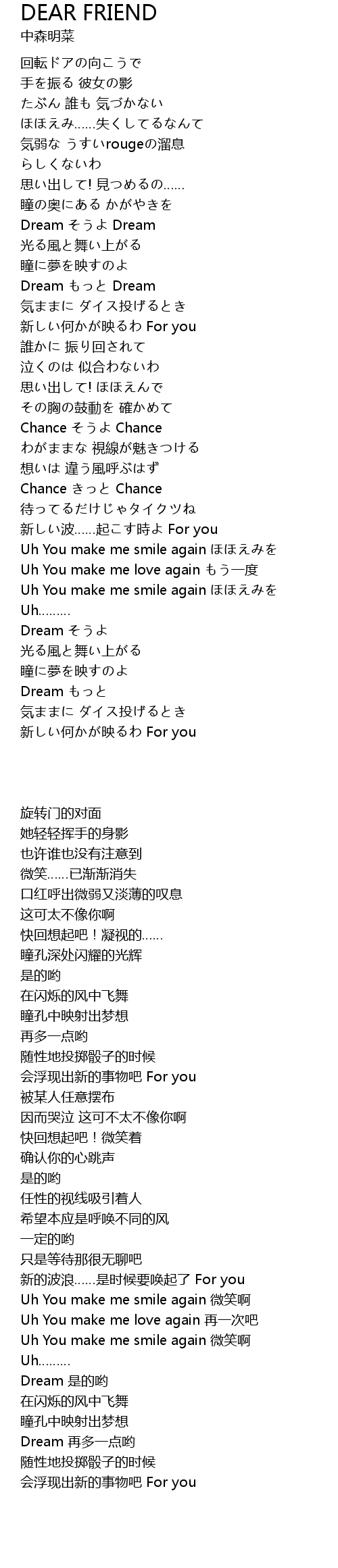 | 歌曲 | DEAR FRIEND |