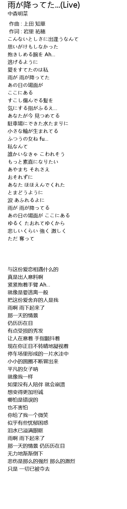 | 歌曲 | 雨が降ってた...(Live) |