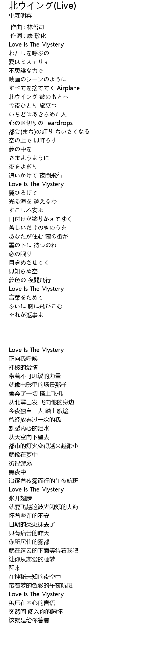 | [00:57.21] | 北ウイング 彼のもとへ |