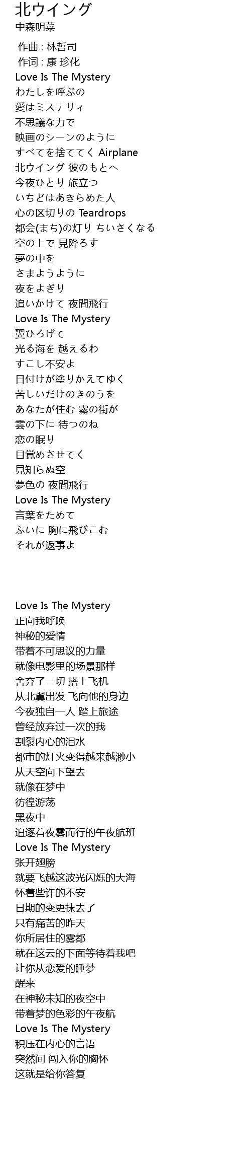 | [00:57.09] | 从北翼出发 飞向他的身边 |