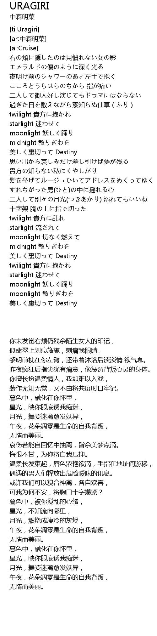 | [04:00.790] | 美しく裏切って Destiny |
