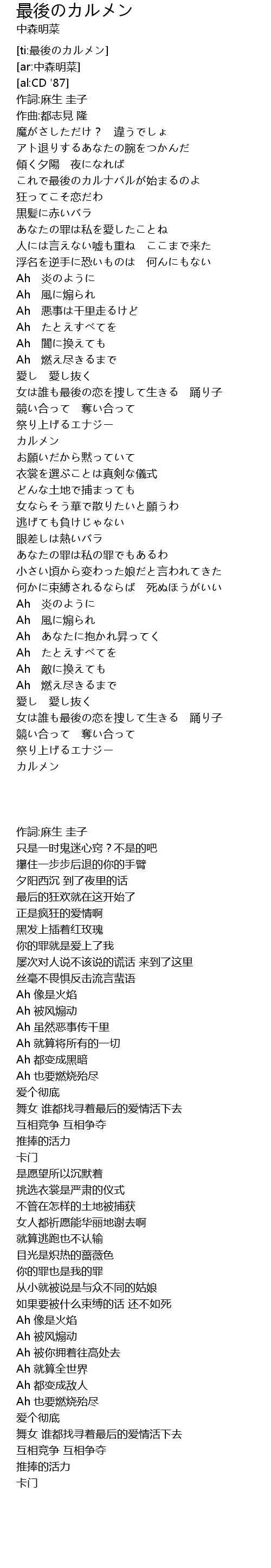 | [00:46.87] | あなたの罪は私を愛したことね |