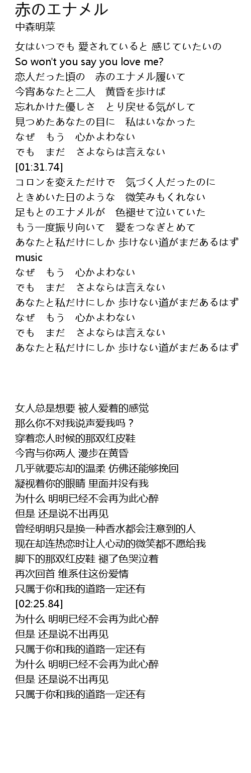 | [00:41.42] | 恋人だった頃の 赤のエナメル履いて |