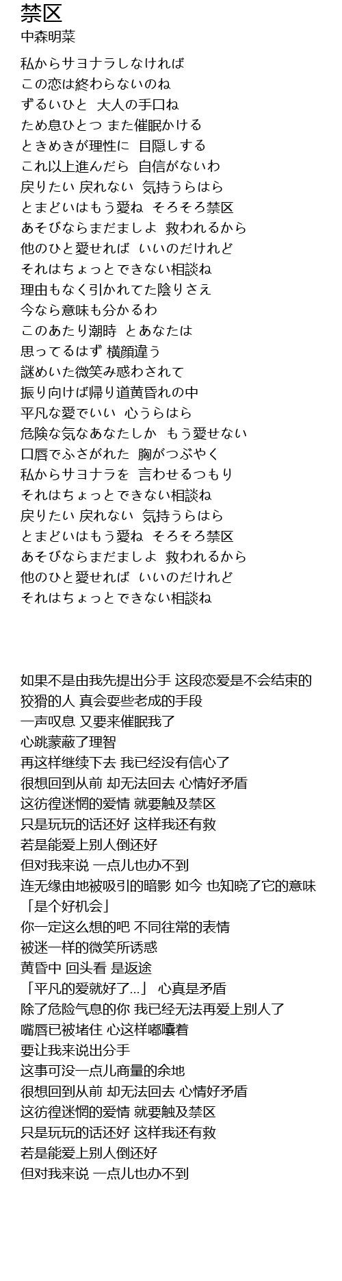 | [01:06.04] | とまどいはもう愛ね そろそろ禁区 |