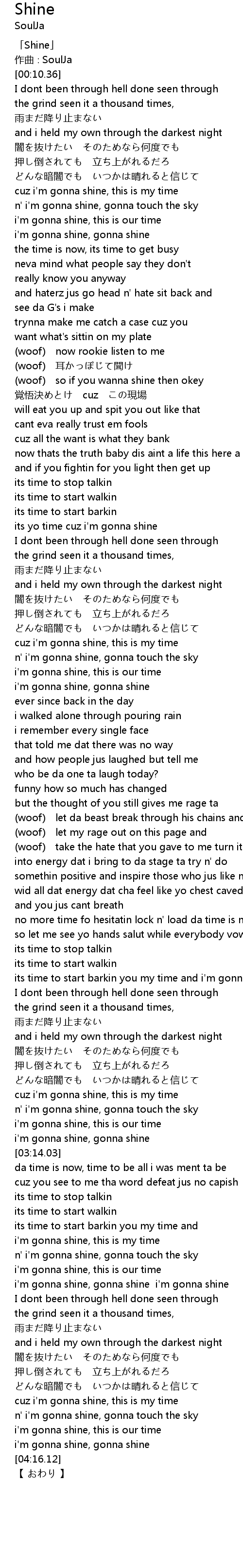 | [01:04.06] | woof so if you wanna shine then okey |