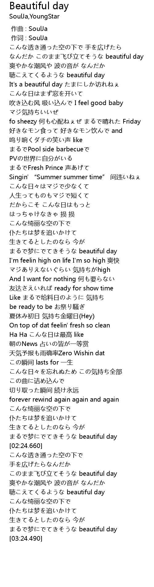 | [03:00.870] | 聴こえてくるような beautiful day |