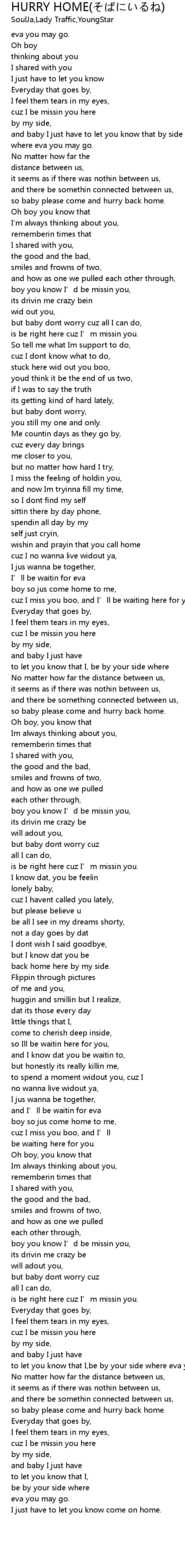 | [02:19.96] | so baby please come and hurry back home. |