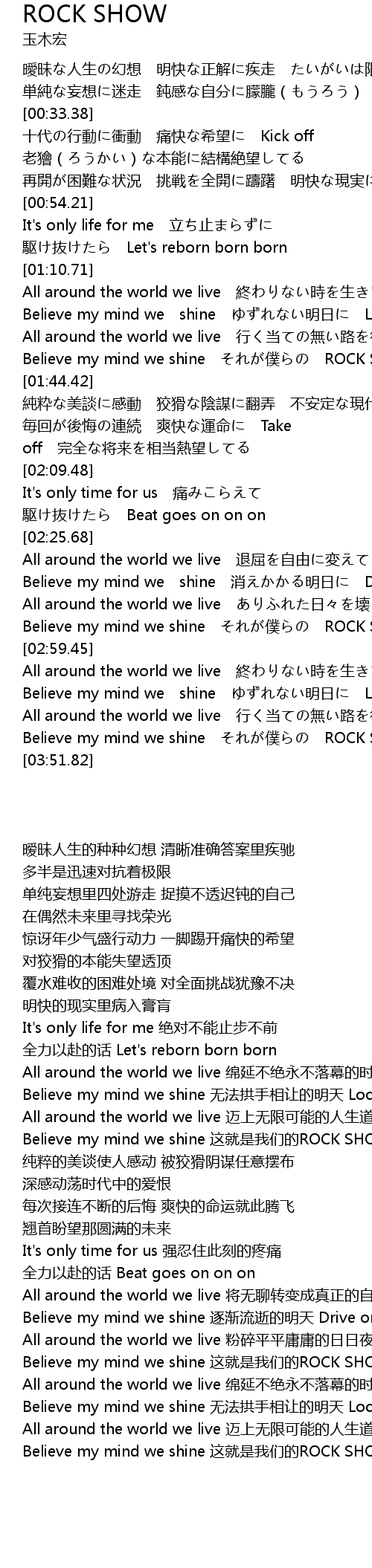 | [02:51.44] | Believe my mind we shine それが僕らの ROCK SHOW |
