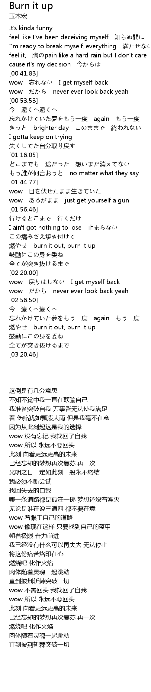 | [03:08.53] | ran burn it out, burn it up |