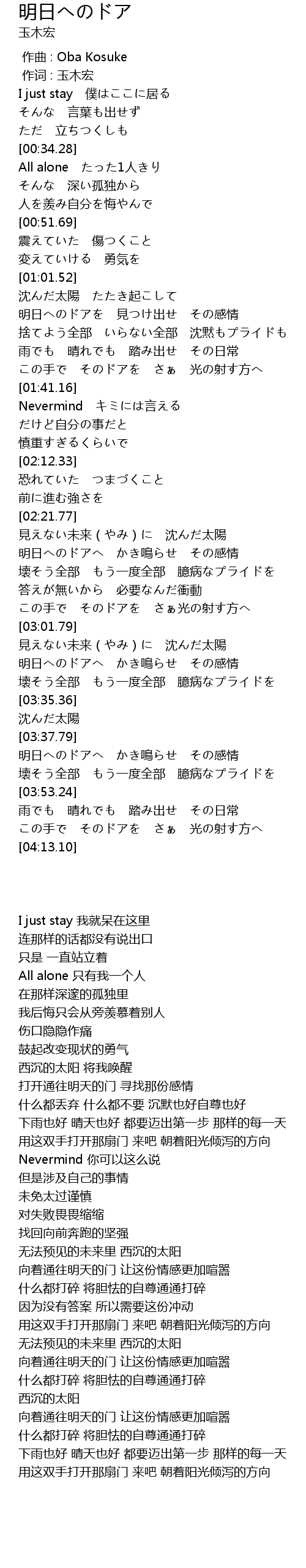 | [00:00.00] | zuo qu : Oba Kosuke |