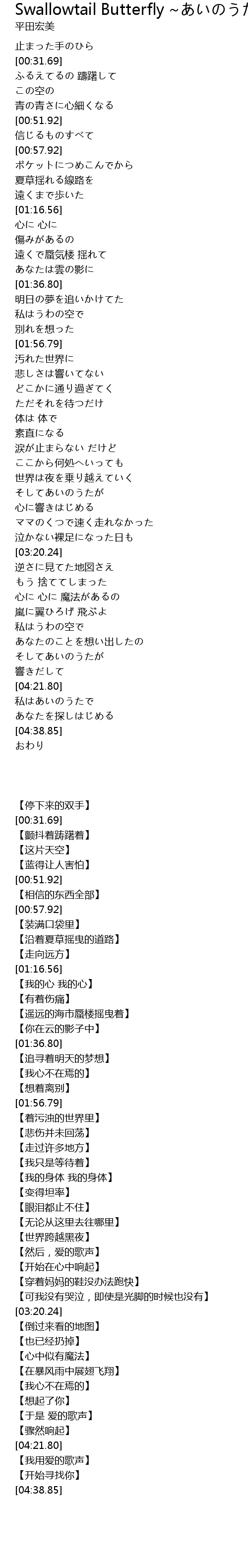 | 歌曲 | Swallowtail Butterfly ~あいのうた~ |