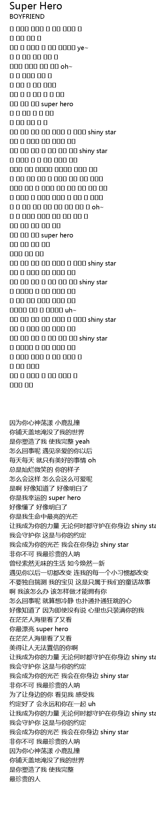 | [02:01.400] | 니가 제일 예뻐 super hero |