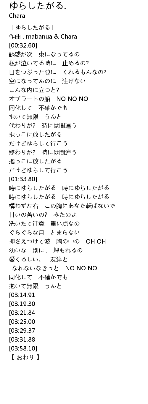 | [01:35.86] | 時にゆらしたがる 時にゆらしたがる |