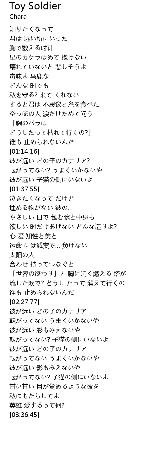| [01:17.21] | 彼が远い どの子のカナリア? |