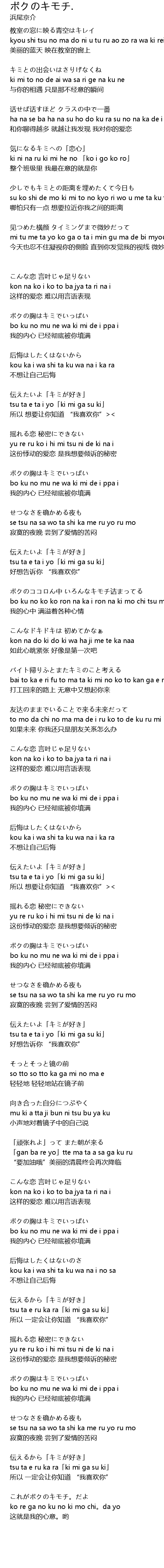 | bo ku no mu ne wa ki mi de i ppa i | |