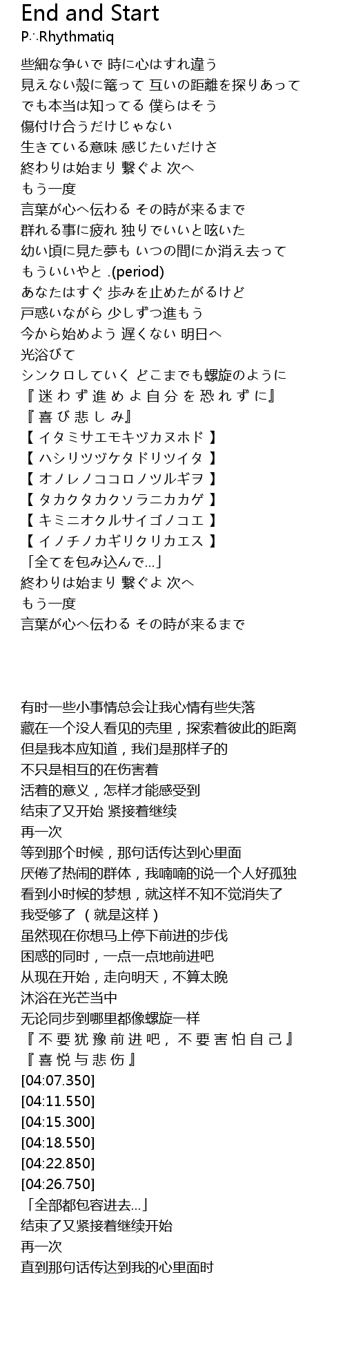 | [04:37.350] | 終わりは始まり 繋ぐよ 次へ |